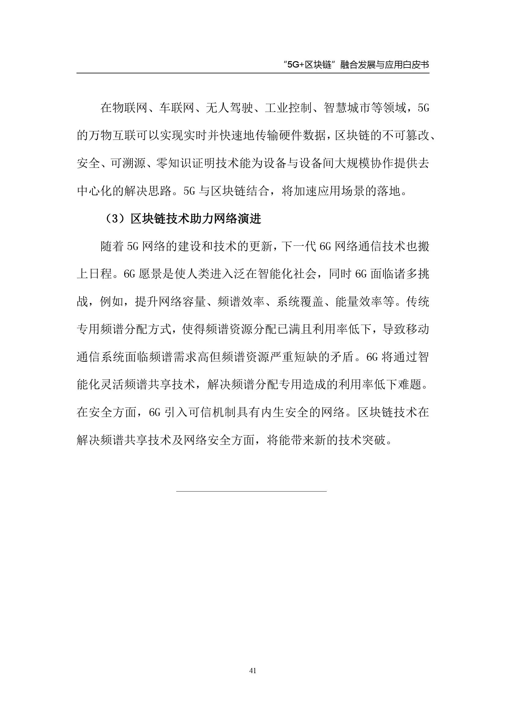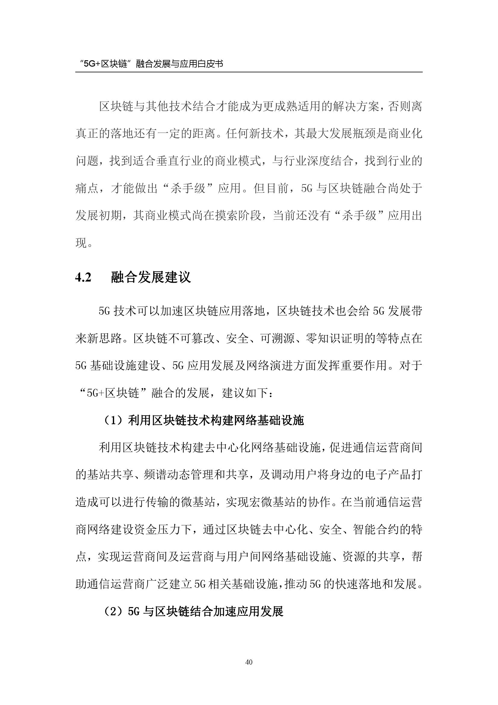最后,白皮书基于 “5G+区块链”融合的发展,给出如下建议: